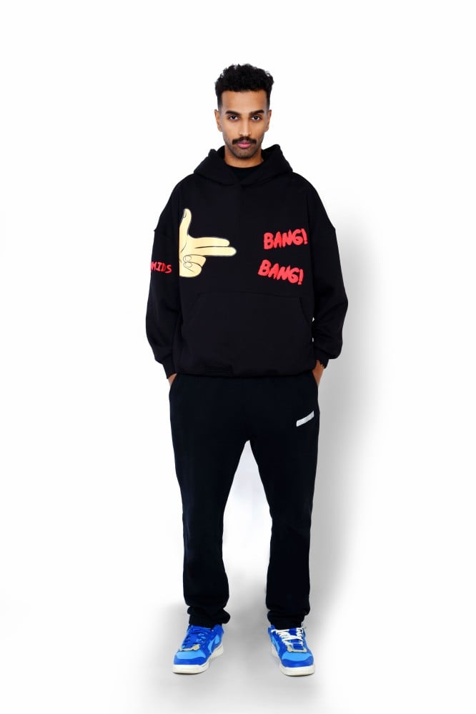 يجي الهودي بطباعة مميّزة في الأمام مكتوب عليها “Bang Bang” مع يد مصممة على شكل مسدّد تعطي لمسة جريئة وعصرية للقطعة